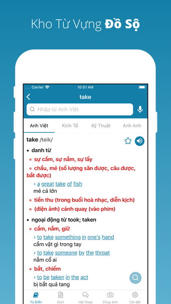 - 包含5个词典的广泛数据库:英越、越英、经济、技术和英英。